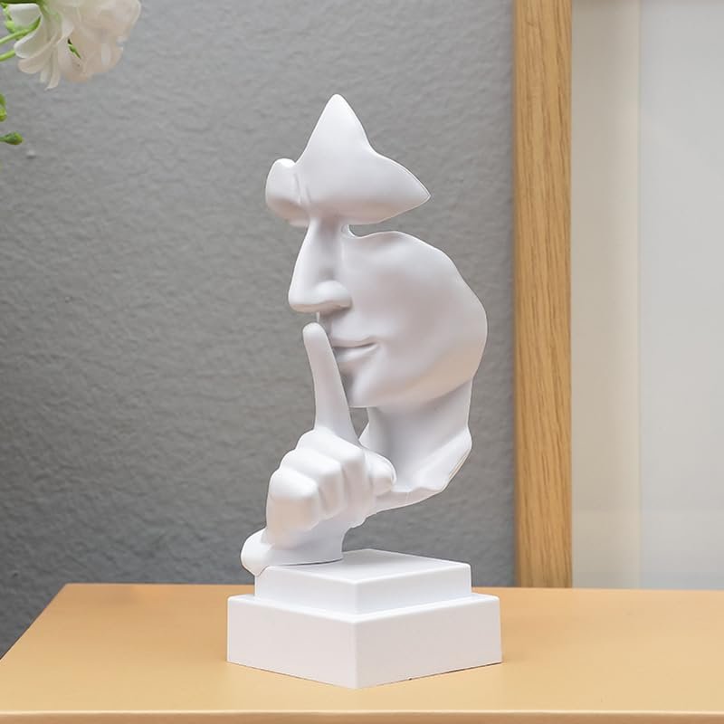 Thinker Statue, Keep Silence Statue - Modern Sculpture Design | Statues of Men Abstract Sculpture Decorative Objects, Table Top Decor for Livingroom Home Decor, Office Study (White)