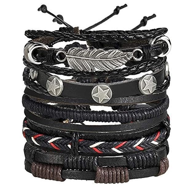 Shining Diva Fashion Genuine Leather Bracelet Wraps Casual Skin Friendly Bracelets for Men Boys