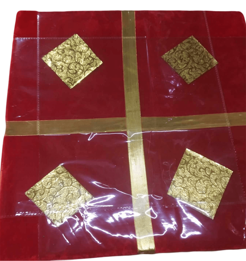 Introducing our exquisite multipurpose aasan, crafted from premium-quality chenille for a touch of luxury and durability. The stunning red hue, complemented by a lavish golden lace border, exudes elegance and sophistication. At its center, a golden flower design adds a regal touch, enhancing the grace and aura of any mandir. Perfect for use as a backdrop in altars or puja mandirs, this aasan also serves as an ideal cover for Mata ki Chowki, puja tables, deity thrones, wooden bajots, and pedestals. Its rich design not only elevates the decor but also brings a sense of reverence and beauty to your sacred space.