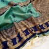 Color: Aqua Teal Pastel Body with Navy Blue & Antique Gold Zari Border