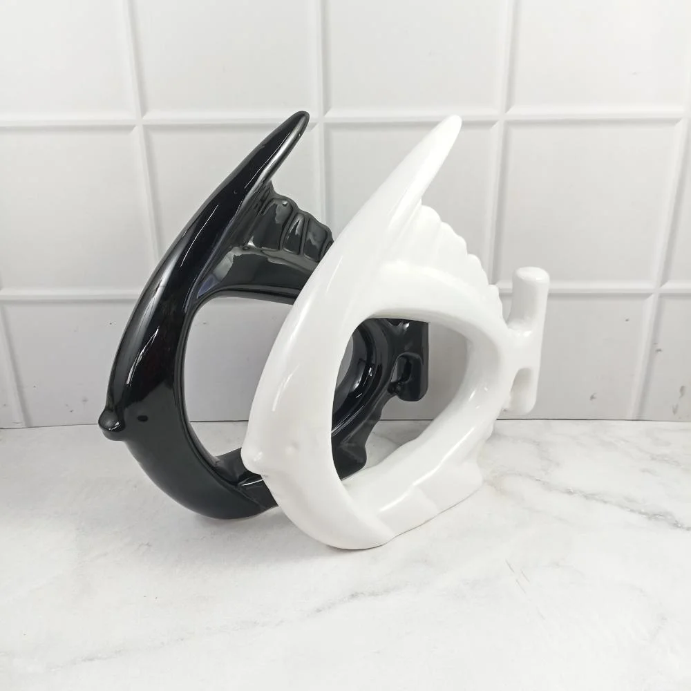 Dpaara Modern Ceramic Fish Sculptures – Black & White Duo