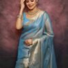 Elegant Handwoven Light Blue Kota Tissue Banarasi Saree with Premium Zari Work & Blouse Piece