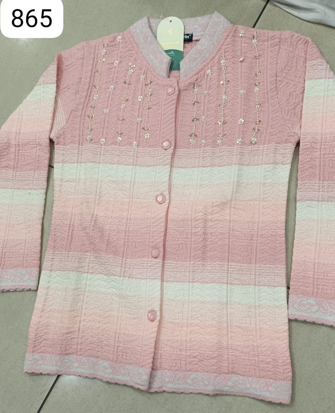 Elegant Pink Striped Knit Cardigan With Decorative Beads