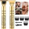 Achieve barber-shop precision at home with the ExtraPower T9 Trimmer. This sleek, gold-finish clipper is designed for detailed beard shaping, hair outlining, and full-body grooming. It features a high-performance motor and sharp T-blades for close, smooth cuts without snagging. The rechargeable, cordless design offers freedom of movement, and the long-lasting battery ensures you're always ready for a sharp, professional look.