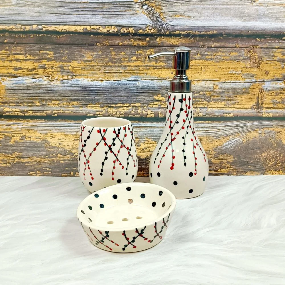Handpainted Khurja Ceramic Bathroom Set