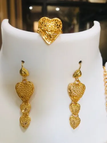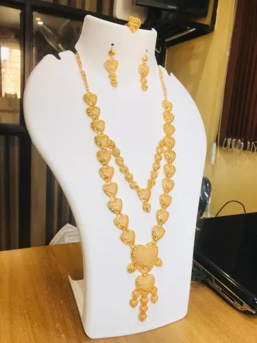 TYPE :- SIDDIQUI GOLD PLATTED LONG NECKLASE SETNET QUANTITY :- 1 UNITCONTAINS :- 1 NECKLACE + 1 PAIR OF EARRING + ADJUSTABLE SIZE FINGER RING