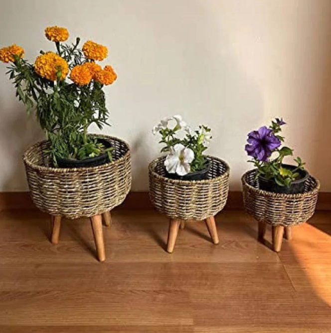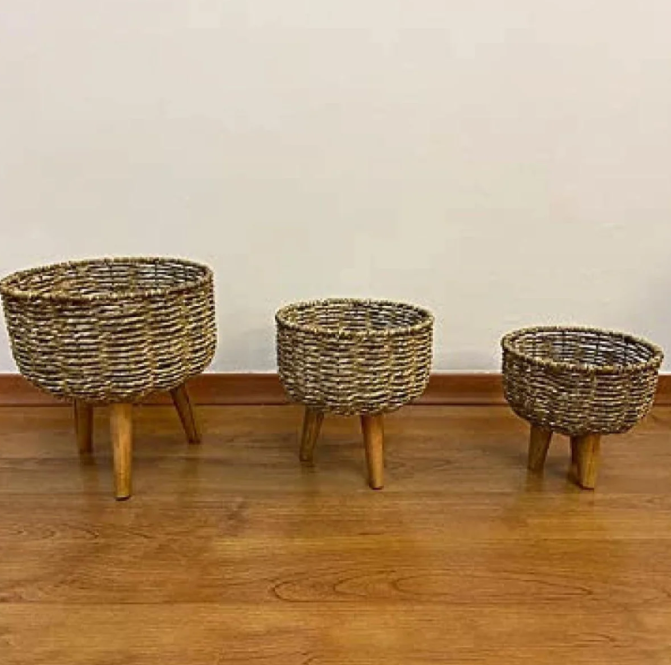 Thank you for reading this post, don't forget to subscribe!The baskets are supported by sturdy, tapered wooden legs, elevating your plants to create an attractive multi-level display. With three varying sizes, this set allows for versatile arrangements, perfect for grouping together or placing individually around your home. Ideal for living spaces, covered patios, or entryways, these planters infuse your decor with organic charm and elevated design.