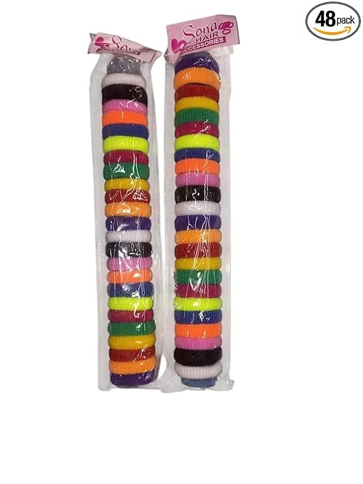 One My Choice Cosmetic Hair Accessories Multicolour Hair Bands, Pack of 48, Elastic Hair Ties