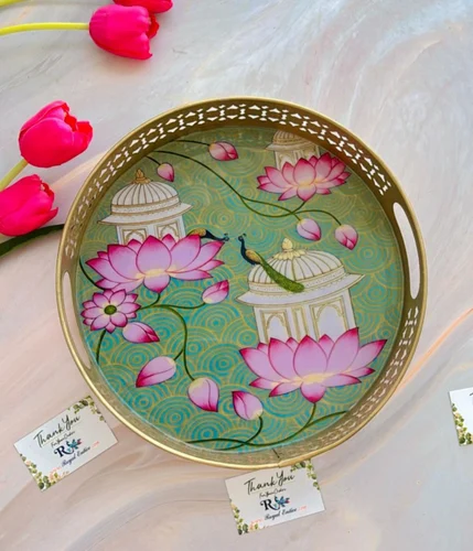 Round Metal Pichwai Tray Wedding Anniversary Gift Hamper