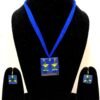 Make a bold style statement with this striking handcrafted jewellery set, featuring a vibrant royal blue theme inspired by tribal art. The set includes a beautifully designed square pendant suspended from a sleek fabric cord, paired with matching square earrings that complete the look effortlessly.