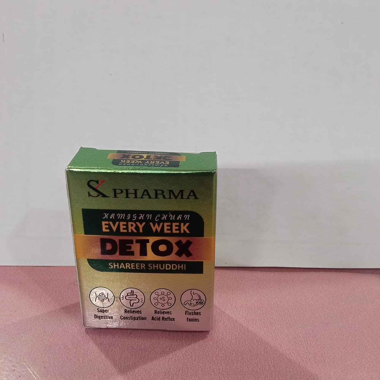 K Pharma Every Week Detox is a wellness product designed to support the body's natural detoxification processes. While specific ingredients can vary, detox supplements often contain herbal extracts and compounds intended to help cleanse the digestive system and support liver function. It's typically used as a scheduled regimen to promote overall gut health and vitality by aiding in the elimination of toxins.