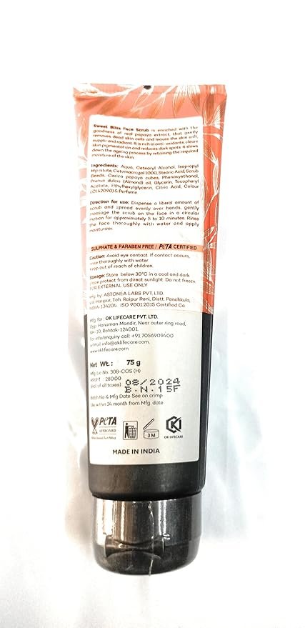 Sweet Bliss Face Scrub with Papaya Pulp Extract, 75g