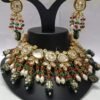 Traditional Kundan Necklace Set with Pearls and Green Bead Detailing