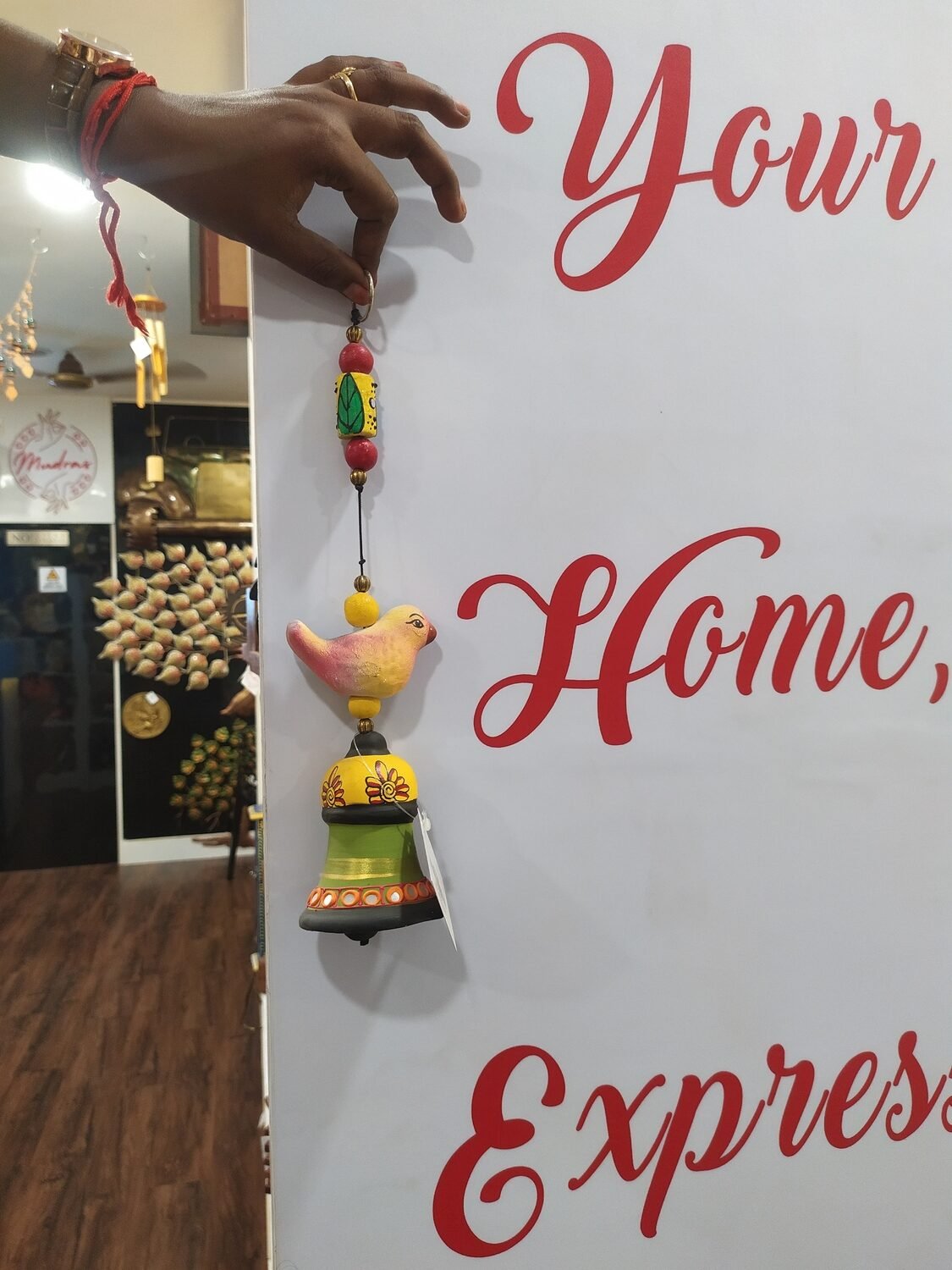 Mudras – Home Decor, Handicraft and Gifts in Velachery presents beautifully crafted wind chimes that add a serene and melodic touch to any space. Made with quality materials and intricate designs, these wind chimes enhance ambiance, promoting relaxation and positive energy—perfect for homes, gardens, or as thoughtful gifts.