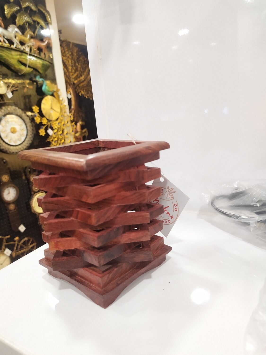 The Wooden Pen Holder by Mudras blends natural elegance with everyday functionality. Crafted from high-quality wood, it offers a refined way to organize pens, pencils, and office essentials. Ideal for desks at home or work, this stylish accessory enhances your space with a touch of traditional charm. Made in India.