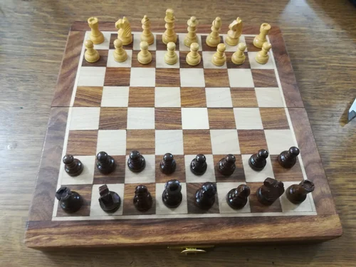 Parvez Art Gallery presents a premium wooden chess set, meticulously crafted for enthusiasts and collectors. Featuring high-quality wood, elegant detailing, and durable construction, it offers a refined gaming experience. Complete with all pieces and secure packaging, this set combines traditional craftsmanship with timeless appeal—perfect for play or display.Parvez Art Gallery presents a premium wooden chess set, meticulously crafted for enthusiasts and collectors. Featuring high-quality wood, elegant detailing, and durable construction, it offers a refined gaming experience. Complete with all pieces and secure packaging, this set combines traditional craftsmanship with timeless appeal—perfect for play or display.
