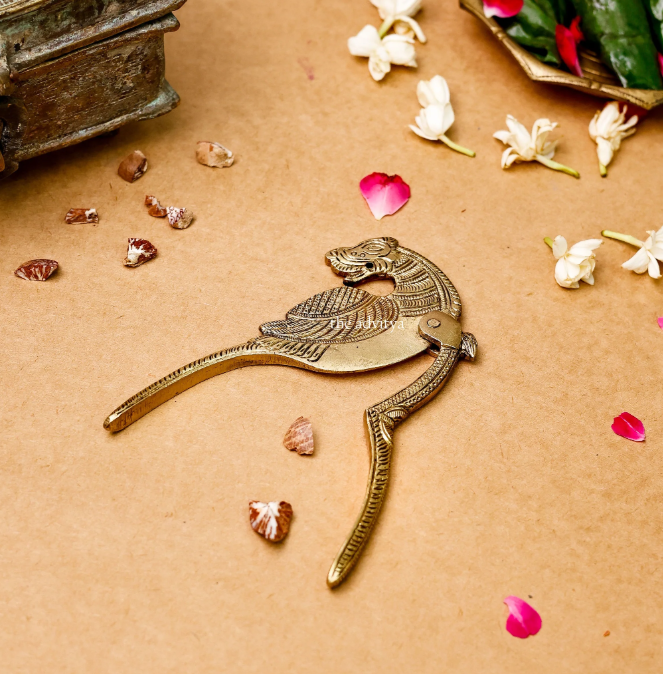 The mythological mysterious creature has one face in this nut cutter. Its rough handle will give a strong grip. The beautiful artwork on this brass product is done by skilled workers.